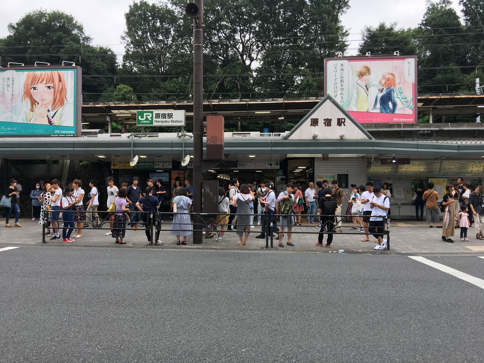 似乎是年輕偶像來竹下通錄影,在竹下通車站跟大家揮手。